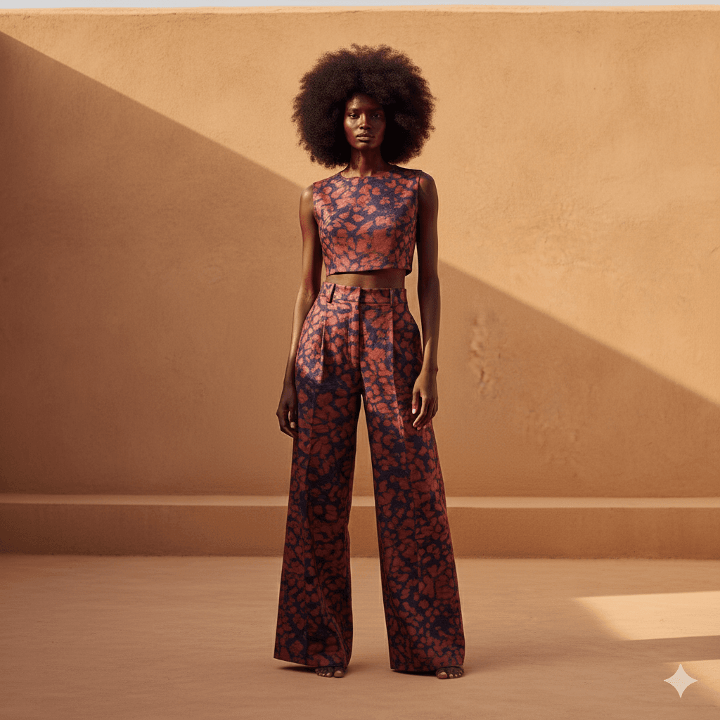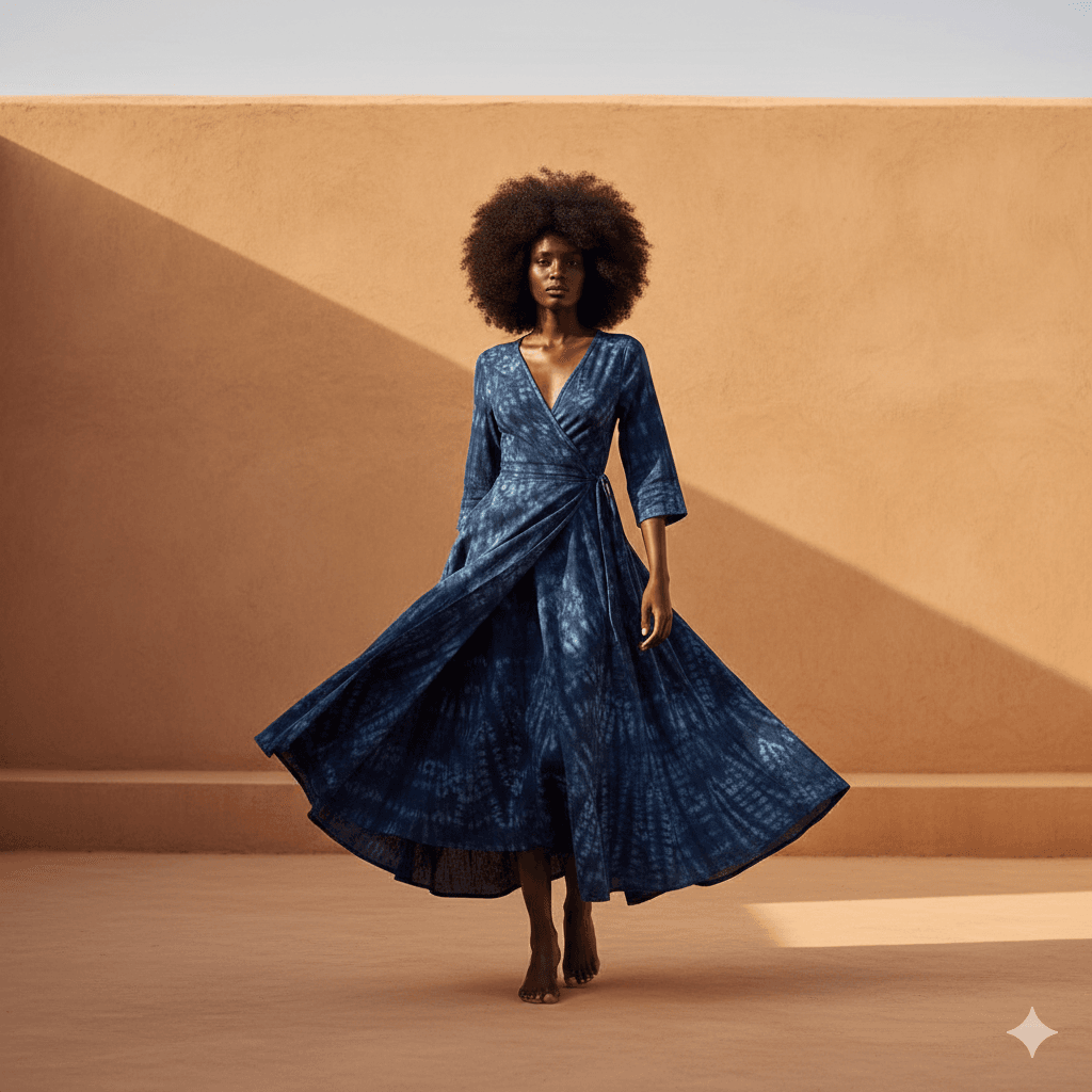 A city dress inspired by contemporary style, made from colorful fabric.